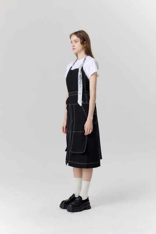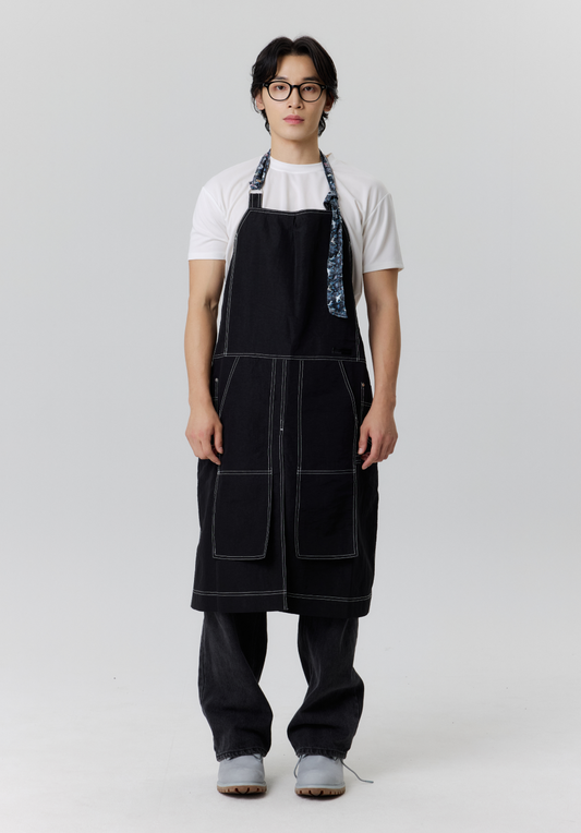 レイヤードポケットブラックエプロン