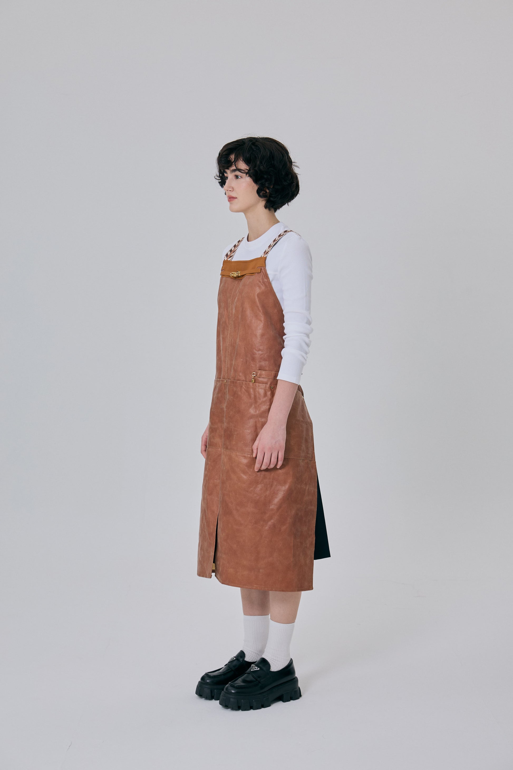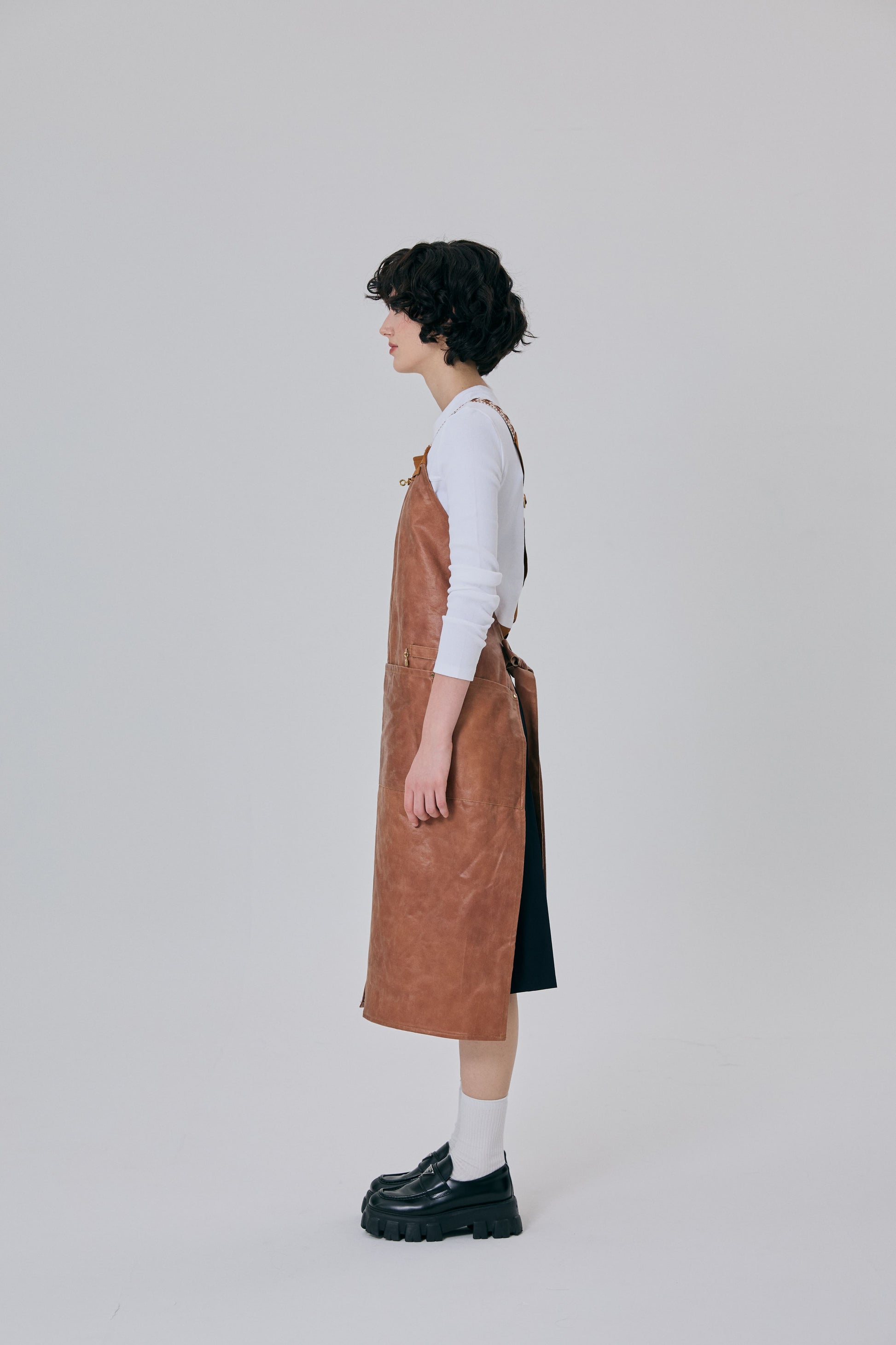 「アーティザン キャメル エプロン」は、職人の精神が込められたエレガントで高級感あふれるヴィーガンレザー素材を使用し、着用するほどに自然なビンテージ感が醸し出されるアイテムです。