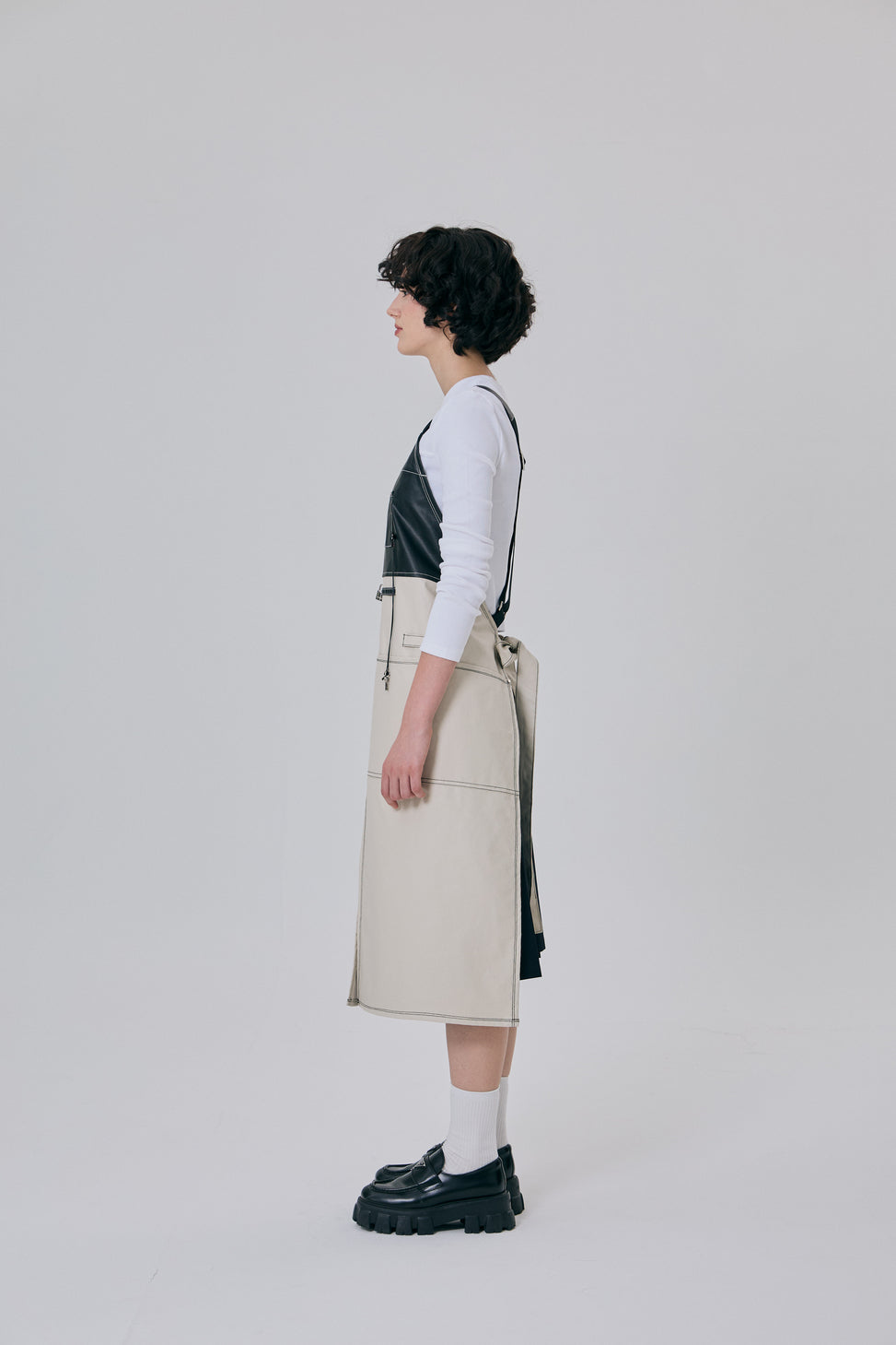 アーティザンクレー エプロンは、 防水性に優れた素材で製作され、 クラシックなオーバーフィットシルエットが高級感を演出します。