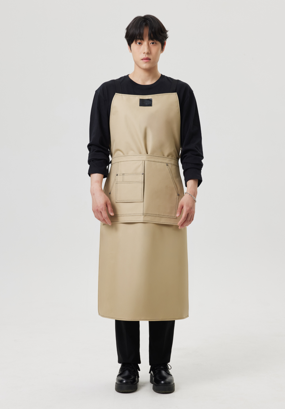 スダルカンパニーのベストセラー「レイヤードポケット」エプロンのニューカラーバージョンで、ピュアで柔らかいムードの「サンド」カラーと軽い素材にアップグレードされました。