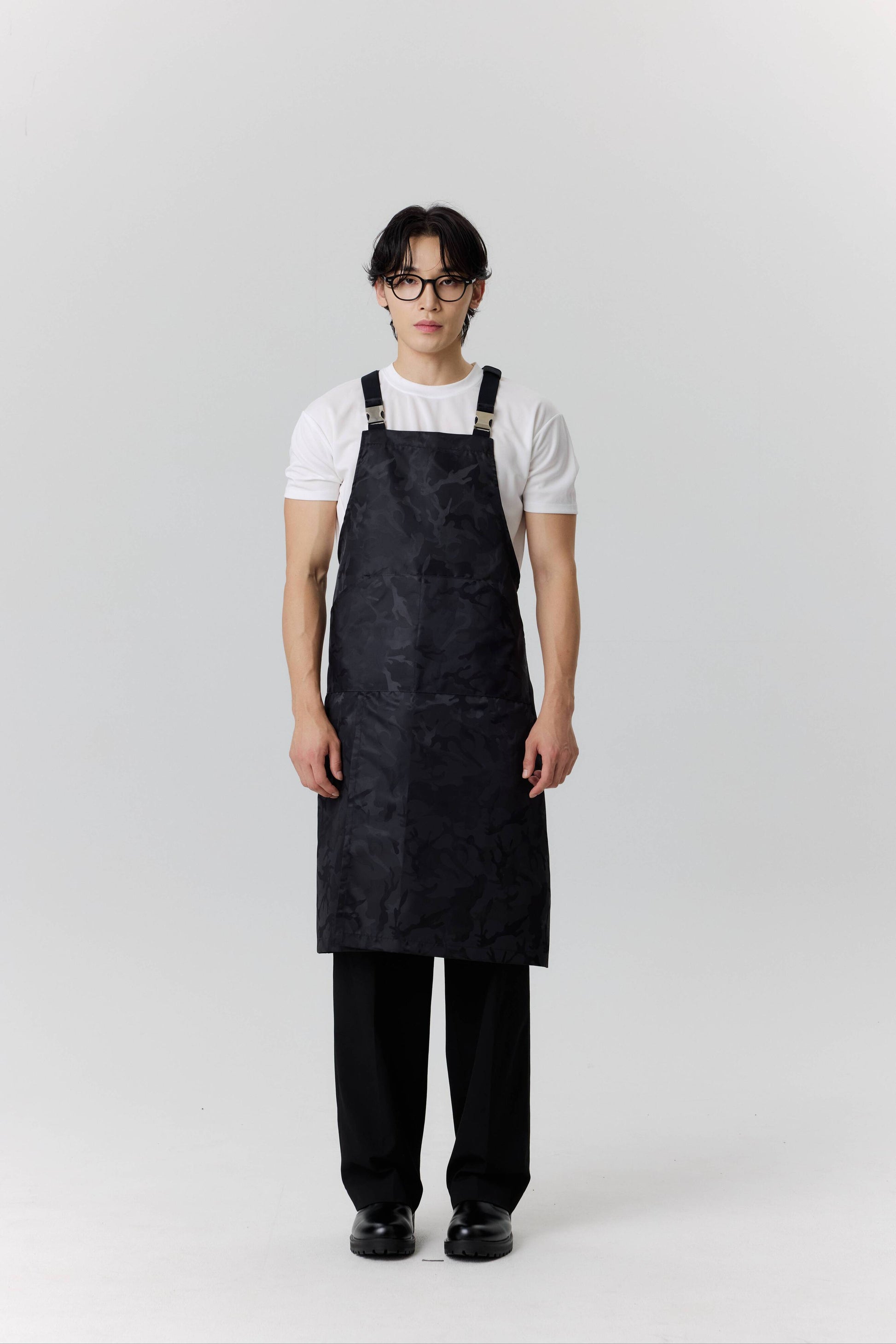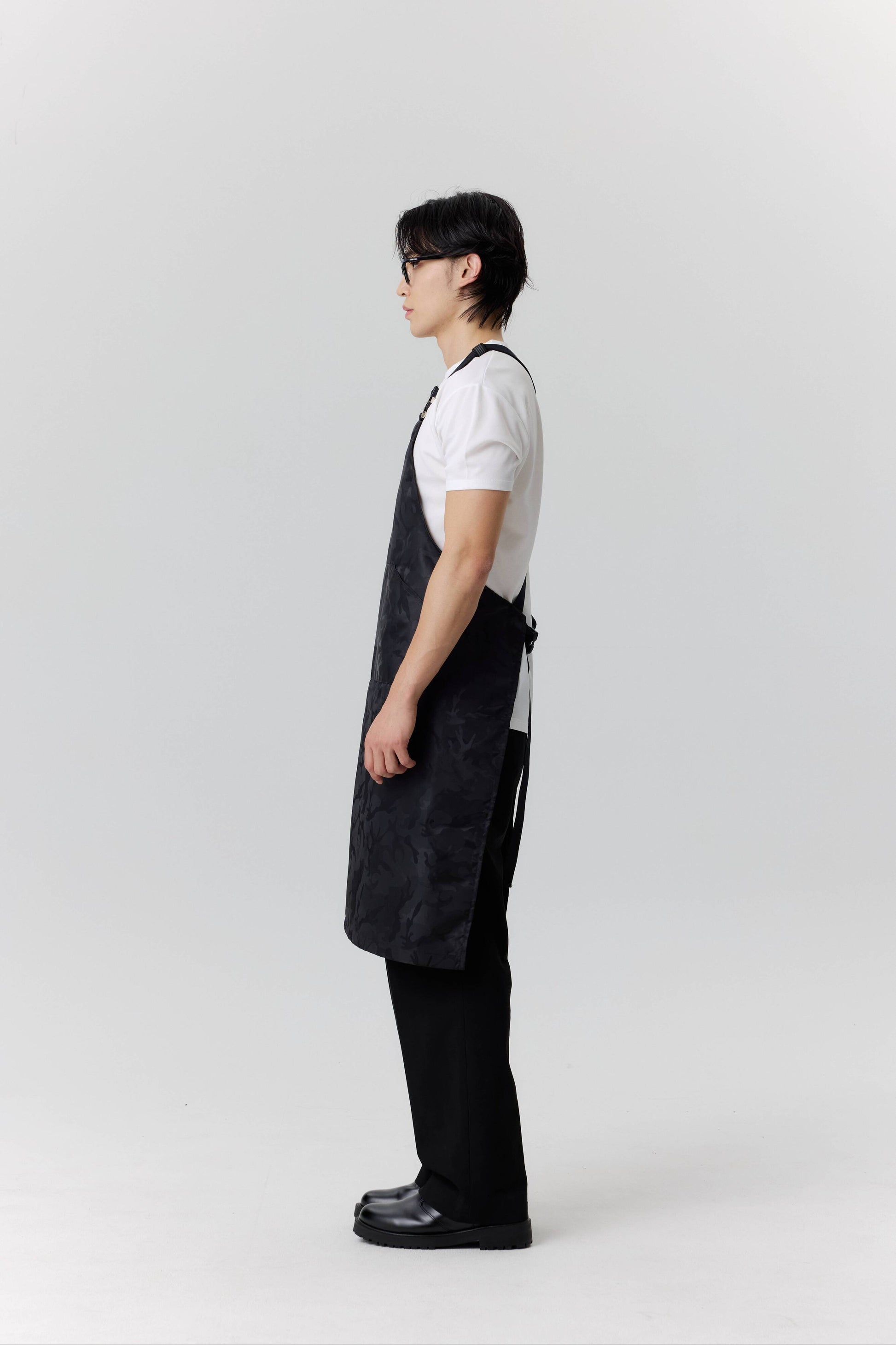 生活撥水はもちろん、染毛剤、化学薬品の使用に不可欠な耐久性の強い生地で製作し、負担にならないカモフラージュパターンがスポーティなムードを演出します。